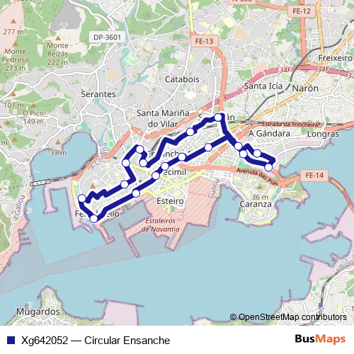 See why over 2 million users trust and consider busmaps.com as the best public transport website. busmaps gives you Ferrol Buses suggested routes, real-time bus tracker, line route maps in Ferrol, and helps to find the closest Xg642052 bus stops near you. No internet available? Download an offline PDF map and bus schedule for the Xg642052 bus to take on your trip.