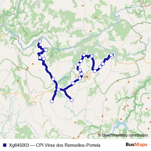 The first stop of the Xg645003 bus route is CPI Virxe DOS Remedios and the last stop is Portela. Xg645003 (CPI Virxe dos Remedios-Portela) is operational during dies feiners.
