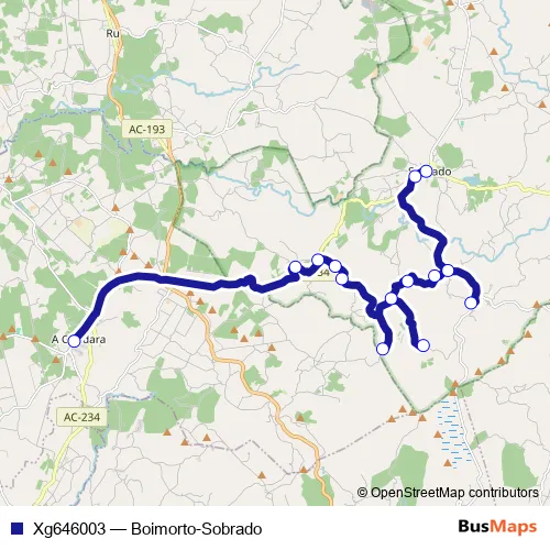 The first stop of the Xg646003 bus route is Boimorto and the last stop is Sobrado. Xg646003 (Boimorto-Sobrado) is operational during dies feiners.