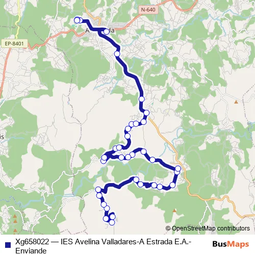 Services on the Xg658022 - IES Avelina Valladares-A Estrada E.A.-Enviande bus start at 07:40 on dilluns, dimarts, dimecres, dijous, divendres.