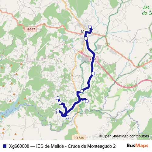 Click here to view the nearest Xg660008 - IES de Melide - Cruce de Monteagudo 2 bus stop.