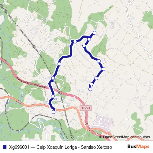 Click here to view the nearest Xg696001 - Ceip Xoaquín Loriga - Santiso Xeitoso bus stop.
