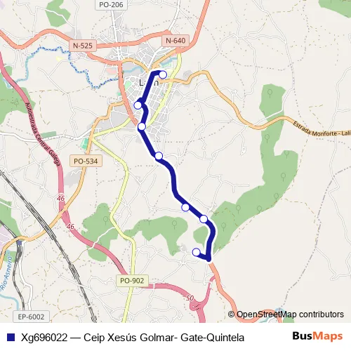 The first stop of the Xg696022 bus route is Ceip Xesús Golmar and the last stop is Gate - Quintela. Xg696022 (Ceip Xesús Golmar- Gate-Quintela) is operational during dies feiners.