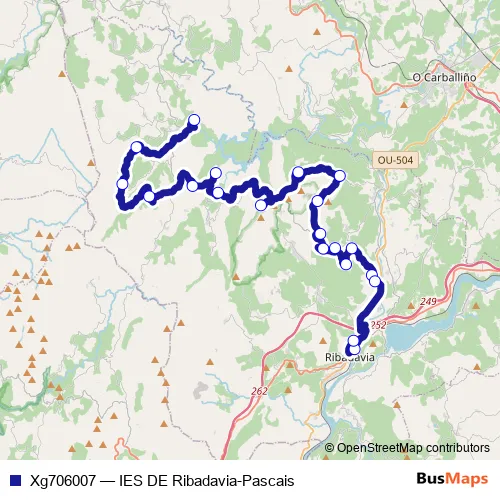 The first stop of the Xg706007 bus route is Pascais and the last stop is IES DE Ribadavia. Xg706007 (IES DE Ribadavia-Pascais) is operational during dies feiners.