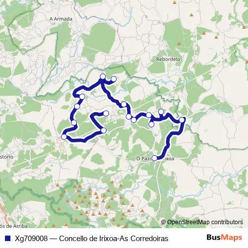 Click here to view the nearest Xg709008 - Concello de Irixoa-As Corredoiras bus stop.