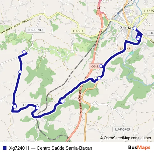 Bus Xg724011 - Centro Saúde Sarria-Baxan in Sarria: Stops & Timetable