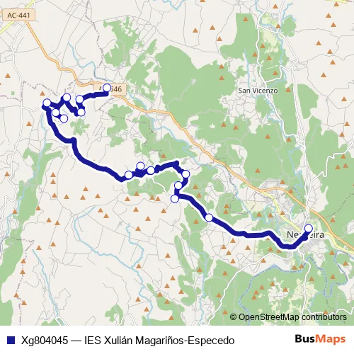 The first stop of the Xg804045 bus route is Especedo and the last stop is IES Xulián Magariños. Xg804045 (IES Xulián Magariños-Especedo) is operational during dies feiners.
