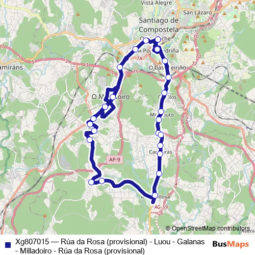 Xg807015 Bus - Rúa da Rosa (provisional) - Luou - Galanas - Milladoiro - Rúa da Rosa (provisional)