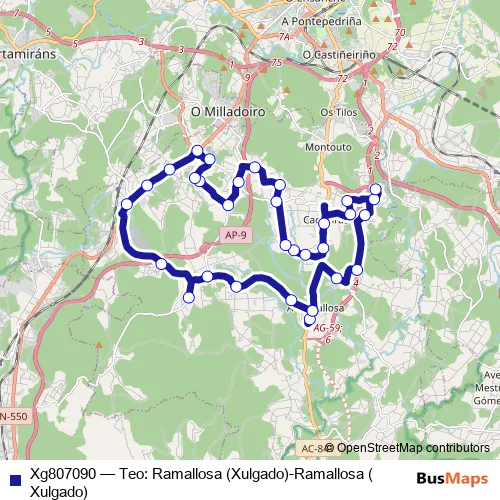 Bus Xg807090 - Teo: Ramallosa (Xulgado)-Ramallosa (Xulgado): Full Schedule in Santiago de Compostela