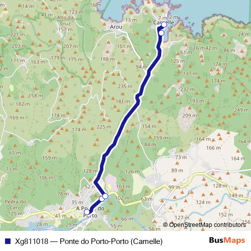 The first stop of the Xg811018 bus route is Ponte Do Porto and the last stop is Porto (Camelle). Xg811018 (Ponte do Porto-Porto (Camelle)) is operational during dies feiners.