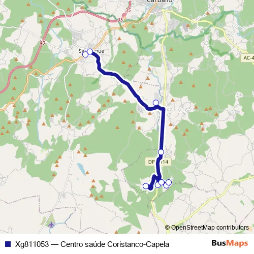 The first stop of the Xg811053 bus route is Centro Saude Coristanco and the last stop is Capela. Xg811053 (Centro saúde Coristanco-Capela) is operational during dies feiners.