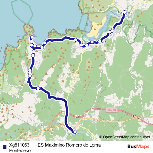 The first stop of the Xg811063 bus route is Ponteceso and the last stop is IES Maximino Romero de Lema. Xg811063 (IES Maximino Romero de Lema-Ponteceso) is operational during dies feiners.