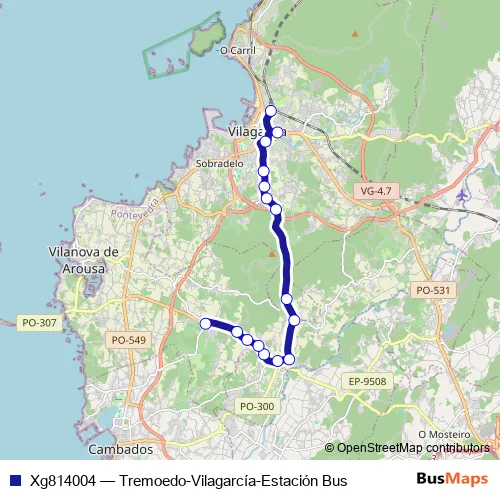 Click here to view the nearest Xg814004 - Tremoedo-Vilagarcía-Estación Bus bus stop.