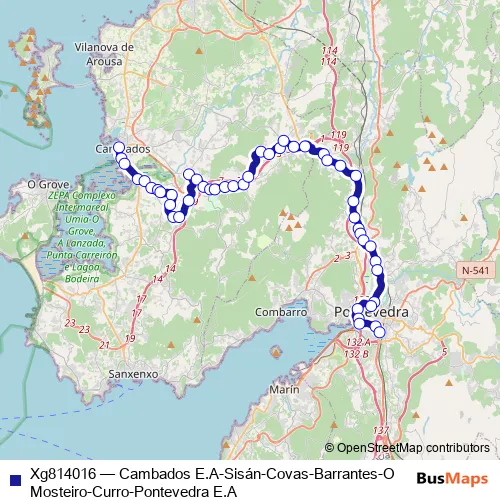 Bus Xg814016 - Cambados E.A-Sisán-Covas-Barrantes-O Mosteiro-Curro-Pontevedra E.A: Full Schedule in Pontevedra