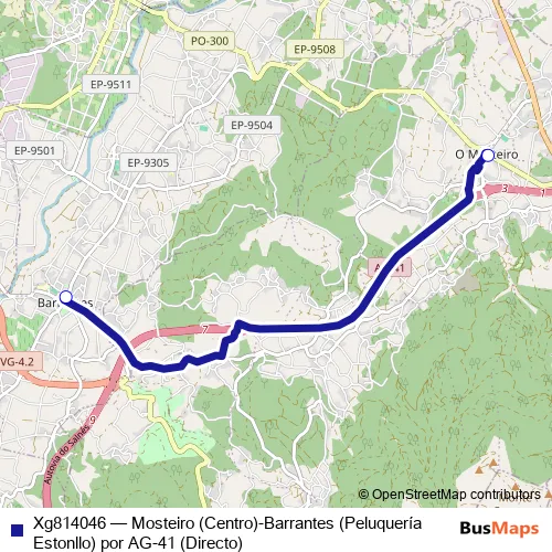 Click here to view the nearest Xg814046 - Mosteiro (Centro)-Barrantes (Peluquería Estonllo) por AG-41 (Directo) bus stop.
