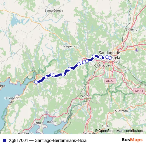 Click here to view the nearest Xg817001 - Santiago-Bertamiráns-Noia bus stop.