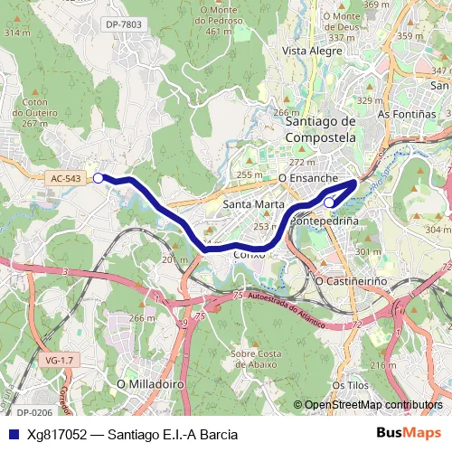 See why over 2 million users trust and consider busmaps.com as the best public transport website. busmaps gives you Santiago de Compostela Buses suggested routes, real-time bus tracker, line route maps in Santiago de Compostela, and helps to find the closest Xg817052 bus stops near you. No internet available? Download an offline PDF map and bus schedule for the Xg817052 bus to take on your trip.
