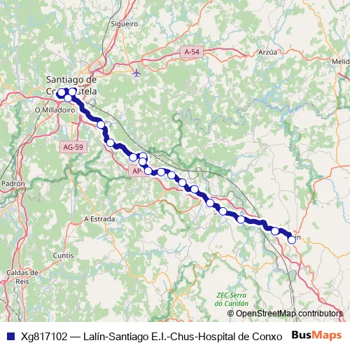See why over 2 million users trust and consider busmaps.com as the best public transport website. busmaps gives you Santiago de Compostela Buses suggested routes, real-time bus tracker, line route maps in Santiago de Compostela, and helps to find the closest Xg817102 bus stops near you. No internet available? Download an offline PDF map and bus schedule for the Xg817102 bus to take on your trip.