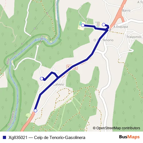 The first stop of the Xg835021 bus route is Ceip de Tenorio and the last stop is Gasolinera. Xg835021 (Ceip de Tenorio-Gasolinera) is operational during dies feiners.