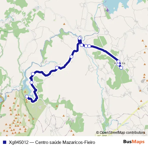 The first stop of the Xg845012 bus route is Centro Saude Mazaricos and the last stop is Fieiro. Xg845012 (Centro saúde Mazaricos-Fieiro) is operational during dies feiners.