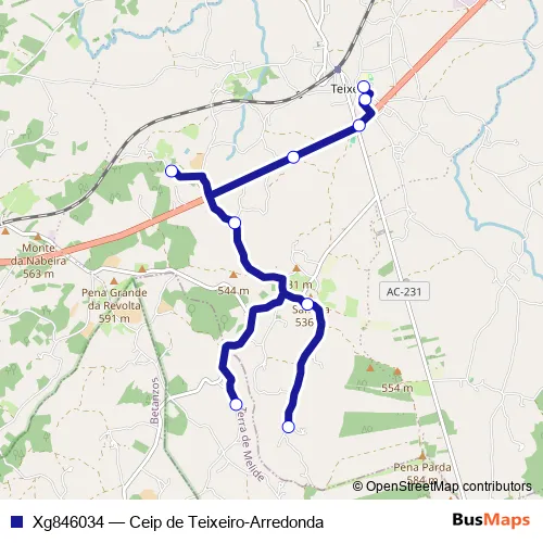 Click here to view the nearest Xg846034 - Ceip de Teixeiro-Arredonda bus stop.