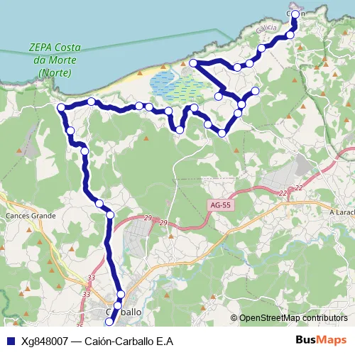 Click here to view the nearest Xg848007 - Caión-Carballo E.A bus stop.