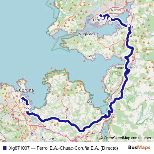 Click here to view the nearest Xg871007 - Ferrol E.A.-Chuac-Coruña E.A. (Directo) bus stop.