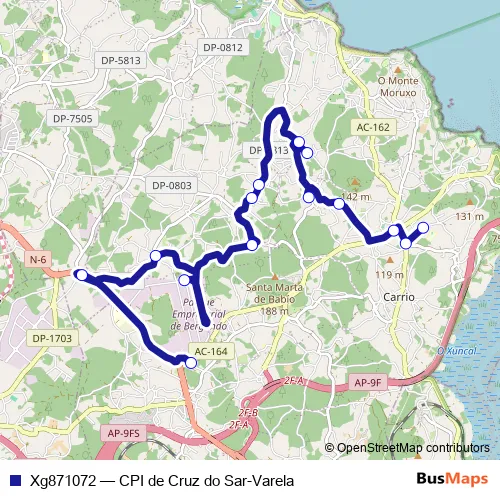 The first stop of the Xg871072 bus route is CPI DE Cruz DO Sar and the last stop is Varela. Xg871072 (CPI de Cruz do Sar-Varela) is operational during dies feiners.