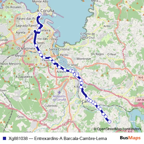 See why over 2 million users trust and consider busmaps.com as the best public transport website. busmaps gives you Cambre Buses suggested routes, real-time bus tracker, line route maps in Cambre, and helps to find the closest Xg881038 bus stops near you. No internet available? Download an offline PDF map and bus schedule for the Xg881038 bus to take on your trip.