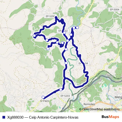The first stop of the Xg888030 bus route is Novas and the last stop is Ceip Antonio Carpintero. Xg888030 (Ceip Antonio Carpintero-Novas) is operational during dies feiners.