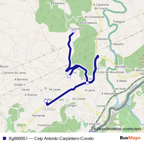 Bus Xg888051 - Ceip Antonio Carpintero-Covelo in Arbo: Stops & Timetable