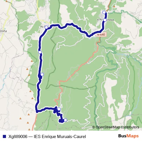 The first stop of the Xg889006 bus route is IES Enrique Muruais and the last stop is Caurel. Xg889006 (IES Enrique Muruais-Caurel) is operational during dies feiners.