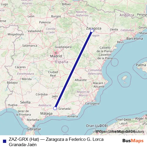 Click here to view the nearest ZAZ-GRX (Hat) - Zaragoza a Federico G. Lorca Granada-Jaén air stop.