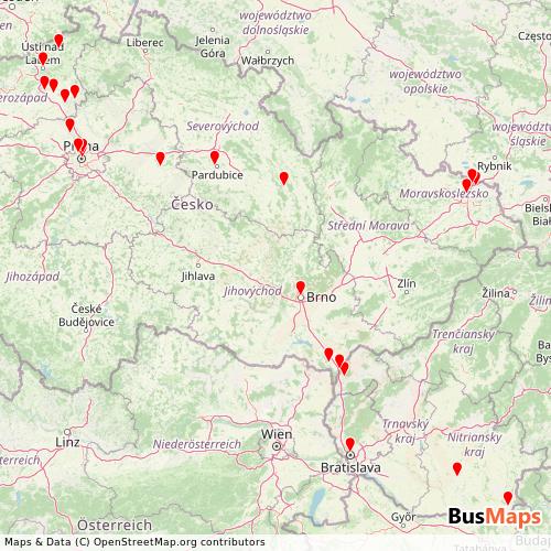 Ceske Drahy operates in the following cities: Breclav.