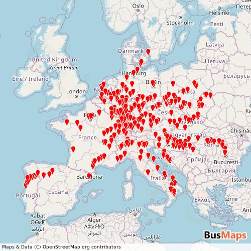 Flixbus-de operates in the following cities: Prague, Luzern, Stuttgart, Amsterdam, Bari, Geneve, Heidelberg, Innsbruck, Paris, Sinaia, Strasbourg, Wroclaw, Zuerich.