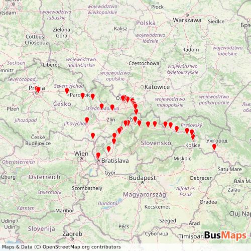 Regiojet,a.s. operates in the following cities: Brno, Ostrava, Kosice.