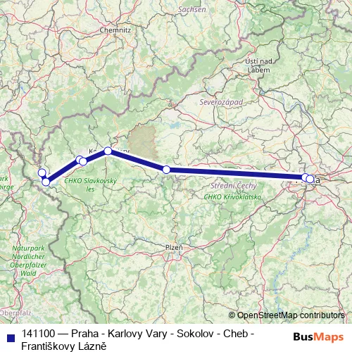 Click here to view the nearest 141100 - Praha - Karlovy Vary - Sokolov - Cheb - Františkovy Lázně bus stop.