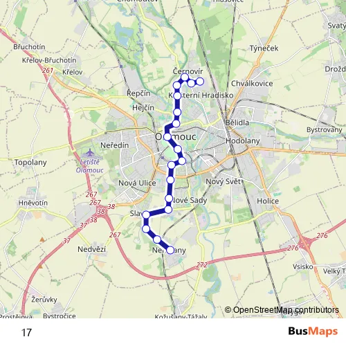 See why over 2 million users trust and consider busmaps.com as the best public transport website. busmaps gives you Olomouc Buses suggested routes, real-time bus tracker, line route maps in Olomouc, and helps to find the closest 17 bus stops near you. No internet available? Download an offline PDF map and bus schedule for the 17 bus to take on your trip.