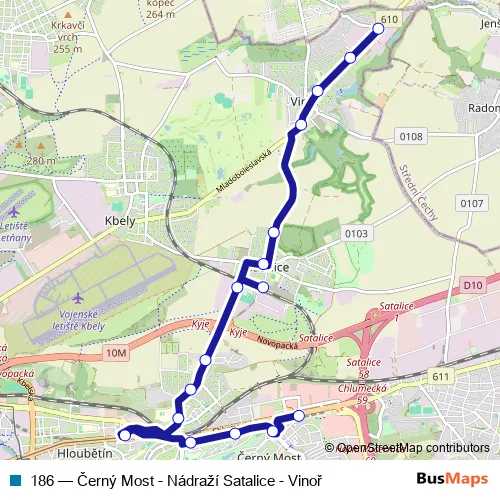 Černý Most. 186 (Černý Most - Nádraží Satalice - Vinoř) is operational during ve všední dny.