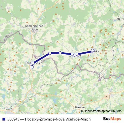 Click here to view the nearest 350943 - Počátky-Žirovnice-Nová Včelnice-Mnich bus stop.