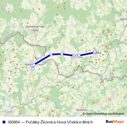 Bus 350954 - Počátky-Žirovnice-Nová Včelnice-Mnich in Nova Vcelnice: Stops & Timetable