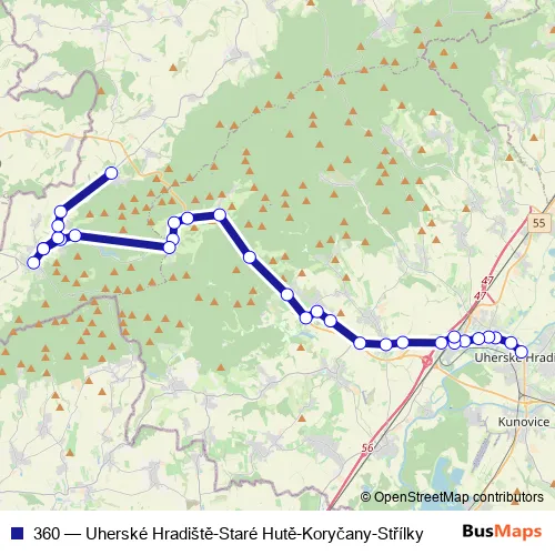 Click here to view the nearest 360 - Uherské Hradiště-Staré Hutě-Koryčany-Střílky bus stop.