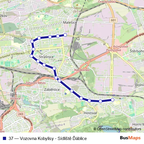 Click here to view the nearest 37 - Vozovna Kobylisy - Sídliště Ďáblice tram stop.