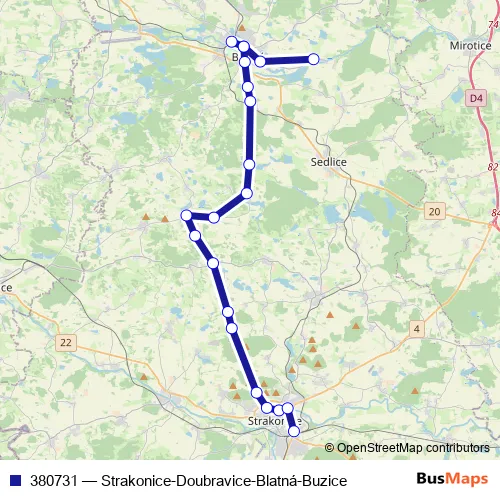 Click here to view the nearest 380731 - Strakonice-Doubravice-Blatná-Buzice bus stop.