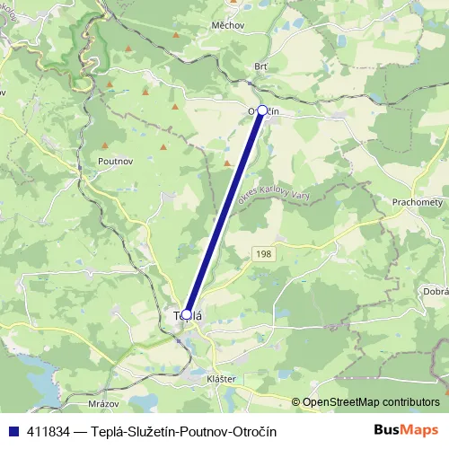 Click here to view the nearest 411834 - Teplá-Služetín-Poutnov-Otročín bus stop.