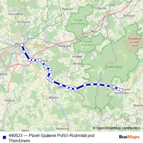 Click here to view the nearest 440523 - Plzeň-Spálené Poříčí-Rožmitál pod Třemšínem bus stop.