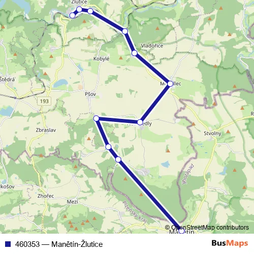 Bus 460353 - Manětín-Žlutice: Full Schedule in Psov