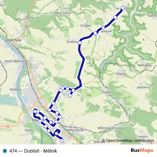 Click here to view the nearest 474 - Dobřeň - Mělník bus stop.