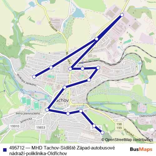 Click here to view the nearest 495712 - MHD Tachov-Sídliště Západ-autobusové nádraží-poliklinika-Oldřichov bus stop.