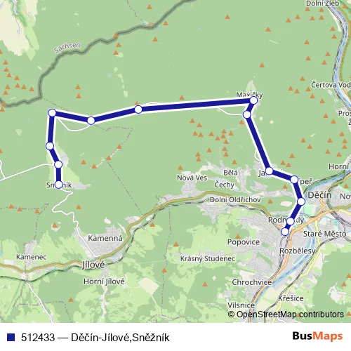 Click here to view the nearest 512433 - Děčín-Jílové,Sněžník bus stop.